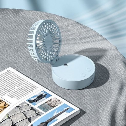미니 접이식 물 냉각 팬 가습 에어컨 쿨러 팬 야간 조명 타이머 데스크탑 팬 자동 테이블, 파란 가정용