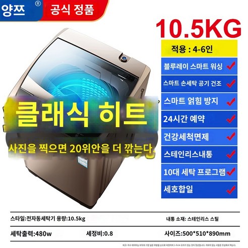 | 세탁기6kg 세탁기 통돌이세탁기10kg Yangzi 공식 정통 세탁기 전자동 가정용 웨이브 휠 작은 용출 10kg 임대 기숙사, 10.5KG 스마트 공기건조 안티 엉킴 블루라이트 세척 | |