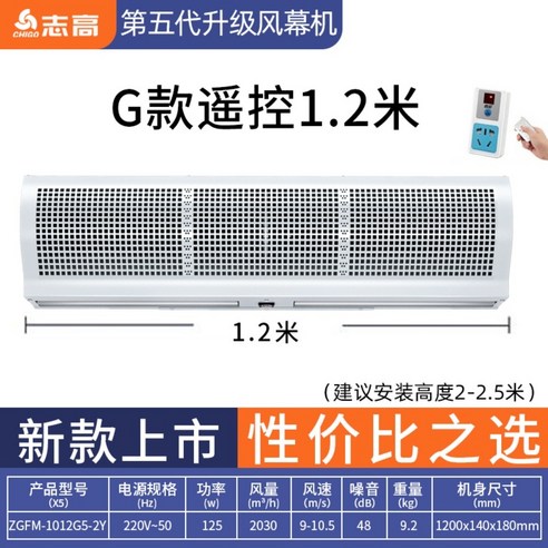 카페 업소용 저소음 에어커튼 환기 냉기 정음 소형, 폭 1.2M + G타입 리모컨 포함