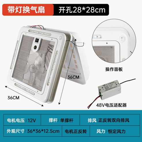 트레일러 환풍기 캠핑카 카라반 배기팬 차박 순환 튜닝용품, 라이트+어댑터포함280280특가