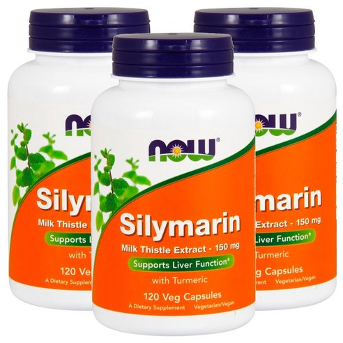 나우푸드 실리마린 밀크 시슬 추출물 터메릭 포함 150mg 베지 캡슐, 120정, 3개