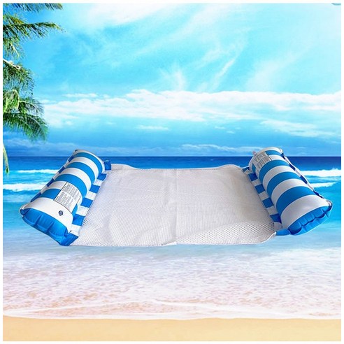 워터해먹 물놀이 수영 수영장 튜브 풍선 플로팅 행 접이식 메쉬 스트라이프 워터 해먹 성인 레크리에이션 라운지 의자 침대, 1.blueA