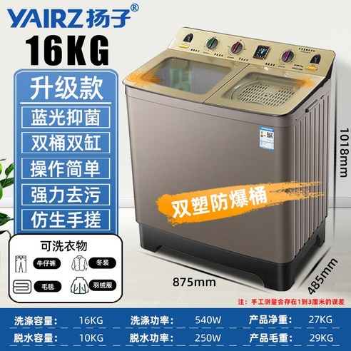 세탁기6kg 세탁기 통돌이세탁기10kg Yangzi 반자동 세탁기 가정용 7/18kg 대용량 더블 배럴 소형 미니 렌탈 웨이브 휠 Blu-ray, 16kg 유리 업그레이드 버전 용출 26kg 일반세탁기 세탁기6kg 세탁기 통돌이세탁기10kg 오크스 10kg 대용량 더블통 실린더 세탁기 반자동 기숙사형 소형 미니 용출 겸용, 세척 탈피 총용량 21kg 유리뚜껑 플라스틱 물통