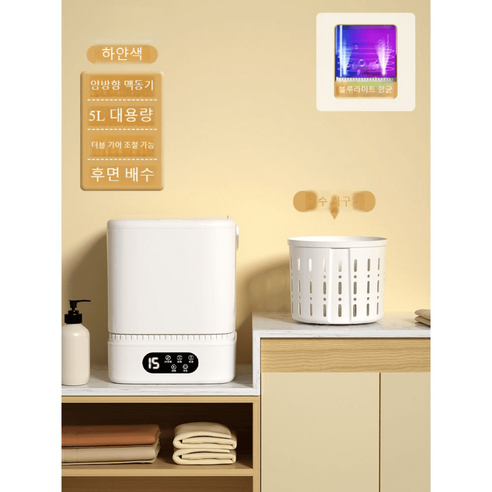 속옷세탁기 미니세탁기 탈수 전자동 5L 양말 항균 기숙사 자취방, 화이트 (살균+배수바구니)의 기능